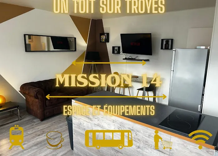 Die 1-Zimmer-Ferienwohnung Mission 14 Troyes liegt in unmittelbarer Nähe von verschiedenen Sehenswürdigkeiten der Gegend: Le Cube befindet sich unter anderem 5 Minuten zu Fuß von hier entfernt. Es liegt nur 250 Meter von der Bushaltestelle Didier und weniger als 1 km vom Bahnhof Troyes entfernt.